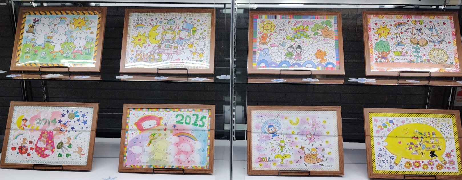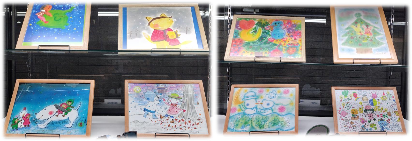 「図書館カレンダーイラスト25枚目の記念として8枚展示